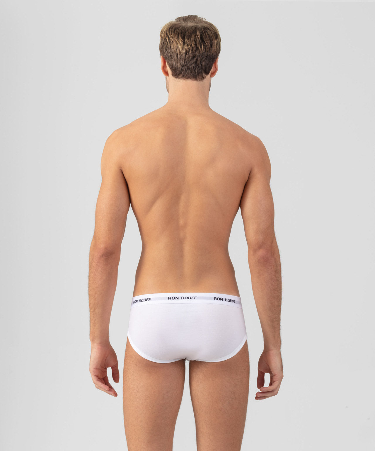 The new RON DORFF Y-front briefs with a visible, white, elastic waistband branded RON DORFF in black. Designed with a tapered fit and cut in the finest cotton jersey with a hint of elastane for a guaranteed fit wash after wash.